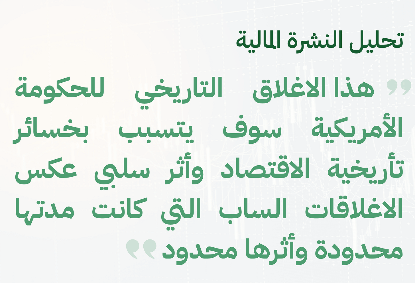 من جهة اخرى، اغلاق الحكومة تسبب بإغلاق أجزاء كبيرة من اعمال هيئة البورصات والاوراق المالية الامريكية SEC هذا الاغلاق تسبب بتعطيل عدد الطروحات في الاسواق المالية ويعتبر اثر ايجابي للسوق لتخفيف المعروض القادم ولكن بعد اغلاق السوق قد نرى موجة طروحات قادمة.