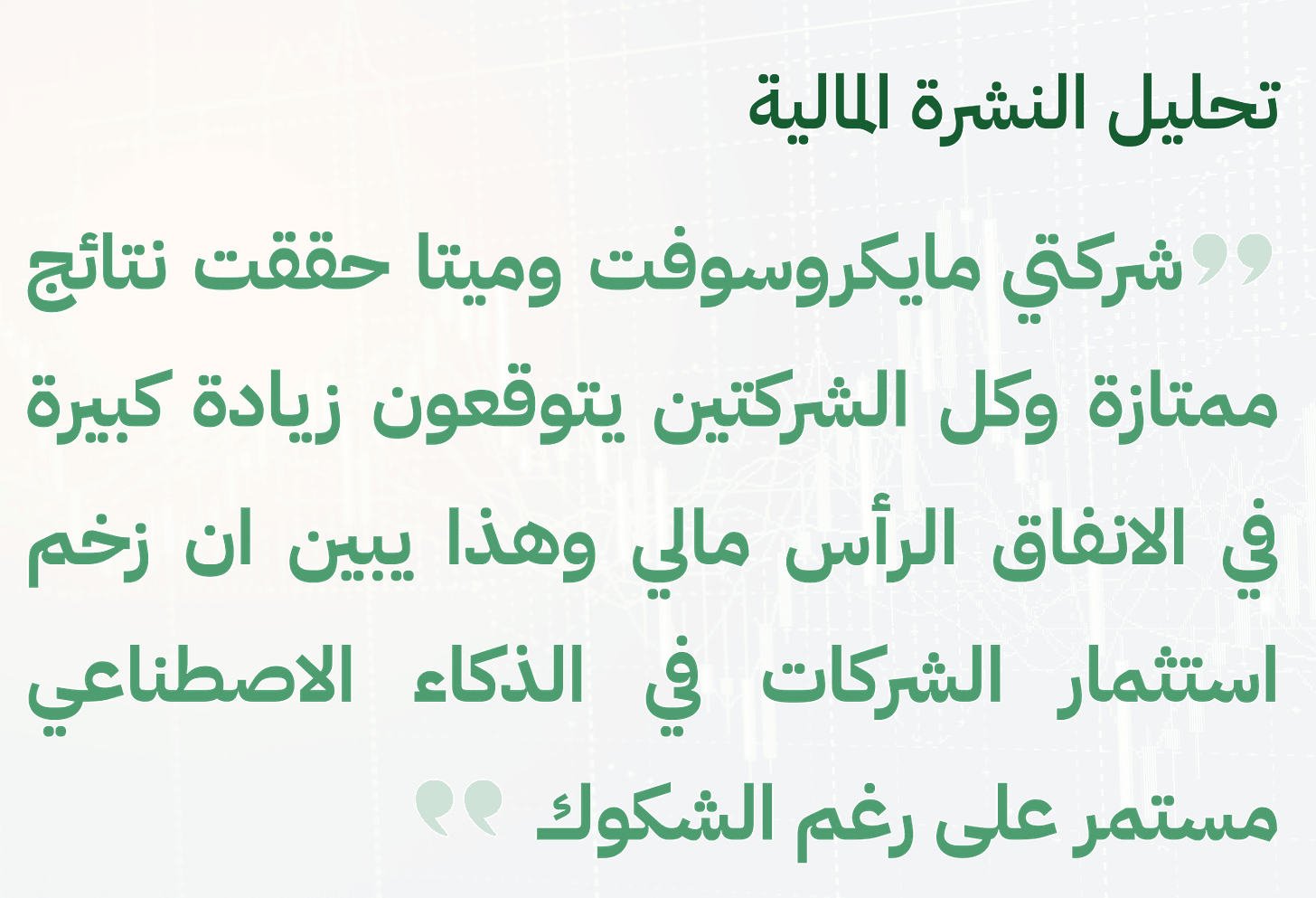اعلنت شركة ميتا عن نتائجها للربع والتي كانت افضل بكثير من توقعات السوق واعلنت الشركة عن زيادة كبرى في الانفاق الرأس مالي للعام الحالي